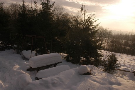 Chata a okolie v zime